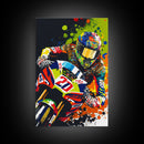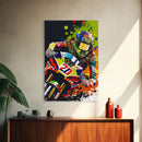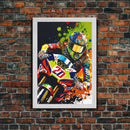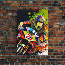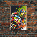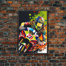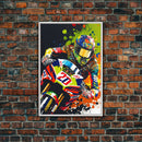 Pop Art Moto Racer, Motorcycle Art, WPAP Style, Framed Canvas Print, Graffiti style motorcycle art, dirt bike racer art